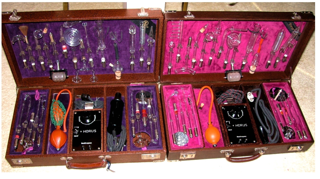 The Turn Of The Century Electrotherapy Museum http://www.electrotherapymuseum.com ![]() ![]() ![]() Featured Collector: Darkerwaters This collection is so impressive, I've decided to keep full size images of everything! No expense has been spared in restoring these machines to better than new condition. I am sure they are the closest thing to visiting the original factories! ![]() A warning of what you're about to see! ![]() McIntosh Faradic Battery Wappler "Ultra Violet Ray Oscillator". Wow! Uranium Oxide Glass Electrodes. Wow! Again! ![]() A few German Violet Rays. There's a few electrodes there too. Look at all of the variations! Germans must have more body parts? Just beautiful! Who needs Geissler Tubes when you have top of the line Violet Ray electrodes?! Ultrazone with Silvered Electrodes Ultrasan, down to the bottle of pine oil! The only twin pole that isn't rusted to no end! The light bulb is to indicate current from a color chart - twin pole units didn't have meters, and this was the next best method. In my opinion its actually more accurate than the meter! I'd kill to find one of these sets. Not as much as these though! That's taking ozone to a whole new level! Senator - Can't judge that box by its cover! Rekord Violet Ray. ![]() Rayzilla (!) Yep, I'd kill for these two! Look at the Fischer logos! Medikus Ozone Generators A Rose by any other name.... Horus Head clamp... Pristine Fischer Diathermy Look at the finish on everything. Its amazing! Incredible FIscher Ozone! Silvered electrodes! Electrophoric Catephoresis Electrode Just amazing! Dynelectron - the spark gap is superb! Plenty of options to choose from! Corbus Electrode. Now I'll have to dig out the blueprints for this one! Helios Violet Ray Flemming Faradic Battery The nicest Signal battery I've never seen! Beautiful Aloe single pole Aeona Radium Electrodes. The infamous Actintic Ray Violet Ray electrode that noone can find! A couple of suitcases. Bare essentials! Not the shockproof handle in the front middle. An excellent collection! Thanks so much for letting us share these photos! (C) Jeff Behary, 2008 |