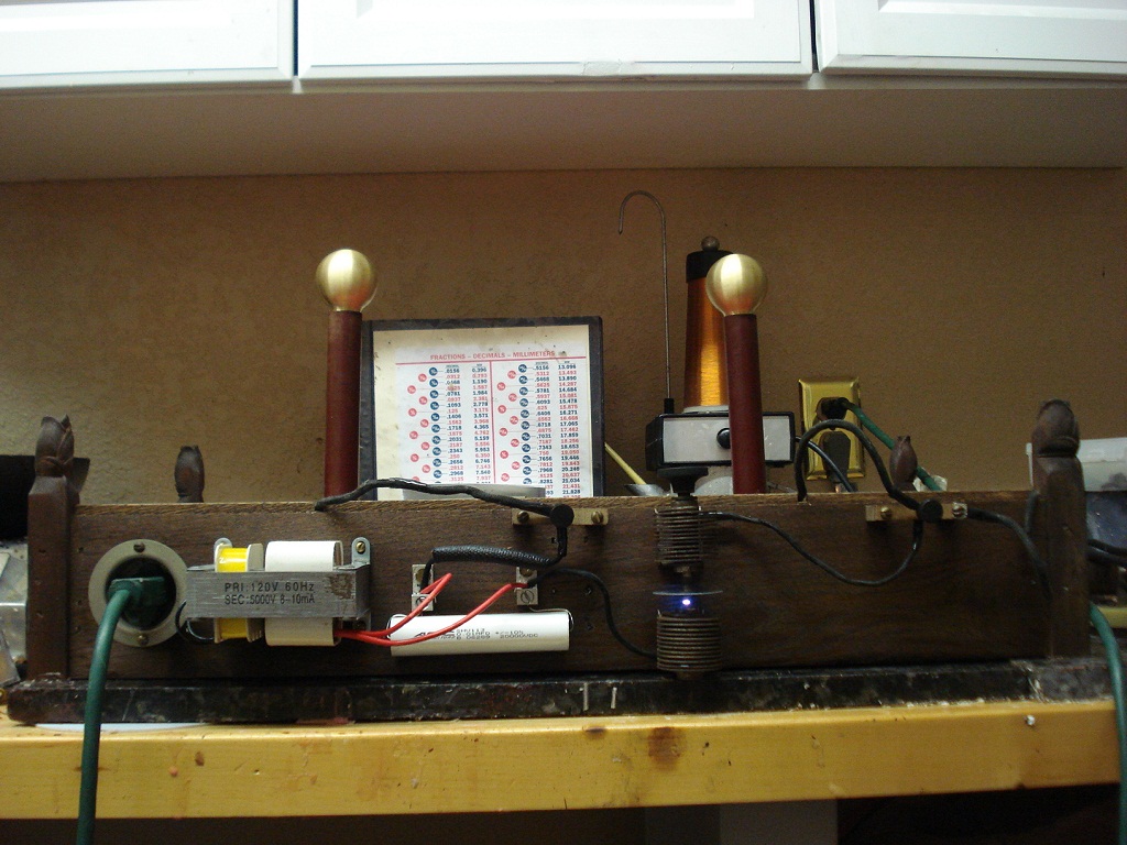 5kV transformer, .01 mfd condenser, 3/16" dia tungsten spark
