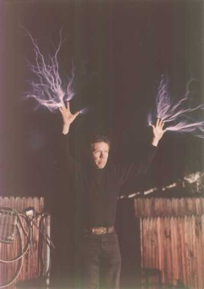 his fingers, taken in 1978, at Tesla Technology's high voltage "backyard" lab.