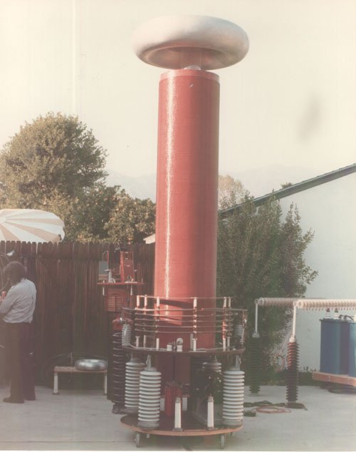 Model 10 Tesla Coil transmission line experments circa 1981. 4.5 megavolts