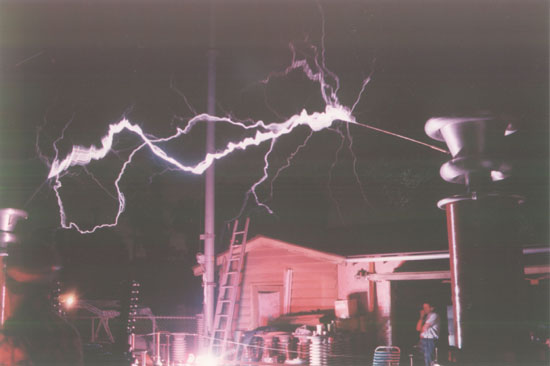 35 foot arcs from Model 12 dual 1/2 lambda Tesla coil system, running at