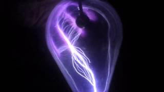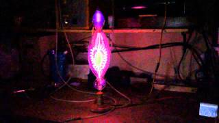 Tesla Coil in a vacuum lamp showing nodes...